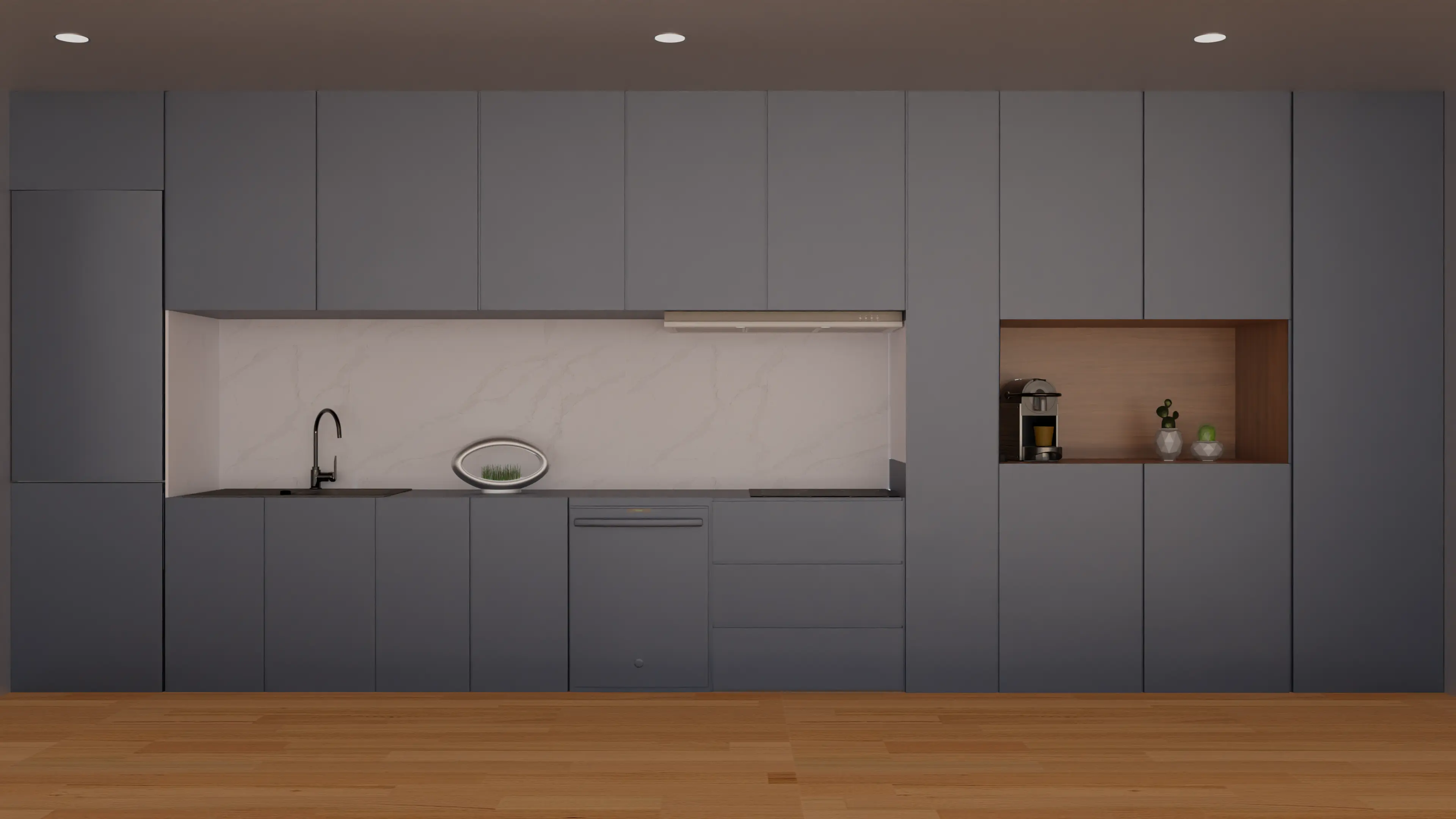 A dark navy blue base tone with the soft to the touch Supermatte finish. Good scratch resistance, low gloss to resemble a paint like finish. Highly recommended for cabinets and doors.